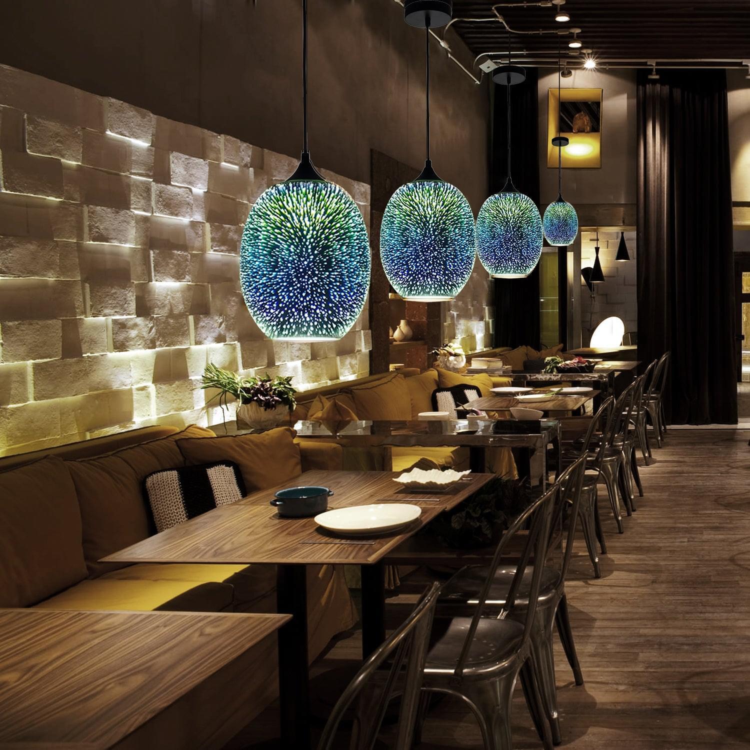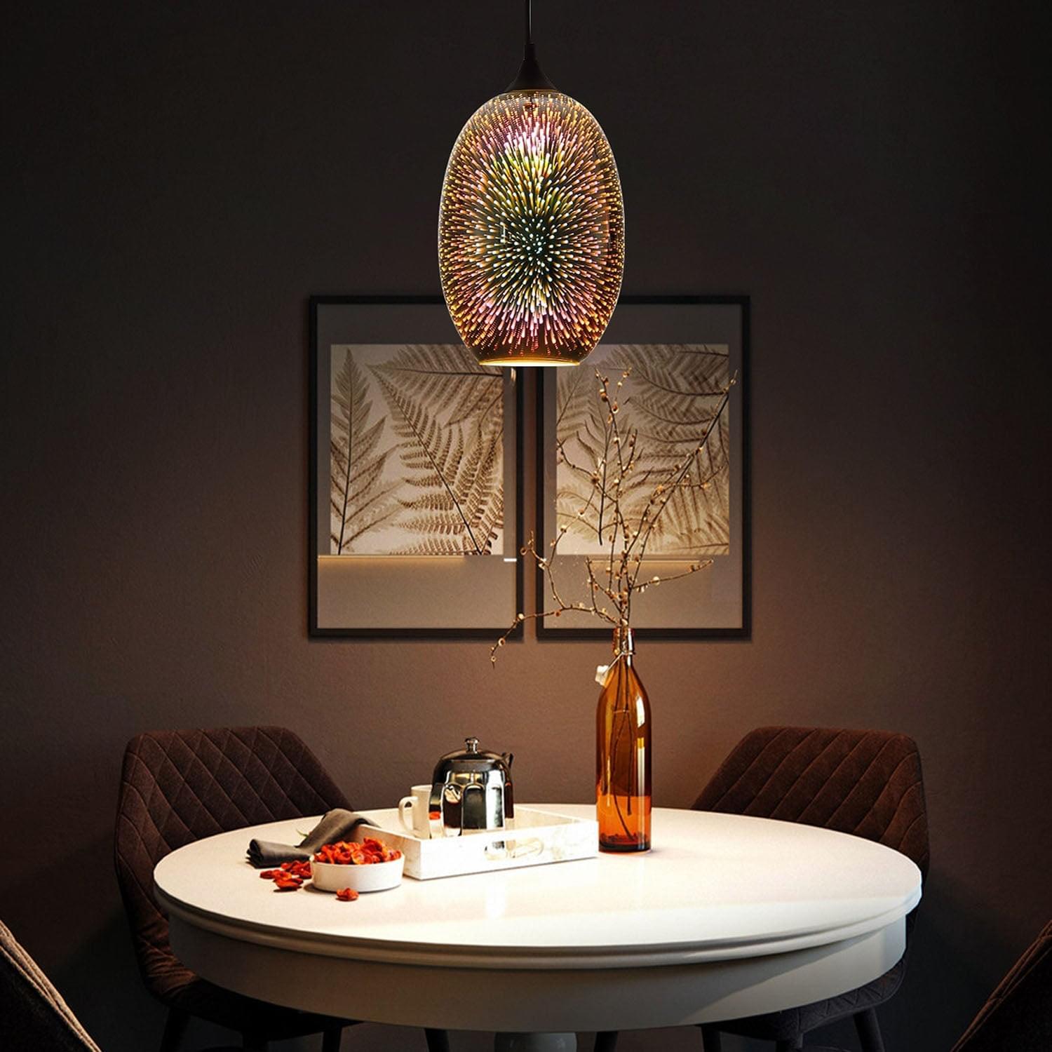 • 3D Firework Glass Shade, 3D Effect Design, Appearance May Vary from Different Light Colors and Brightness (Color of the chandelier will change based on light bulbs' color and may not be exactly the same as the pictures)