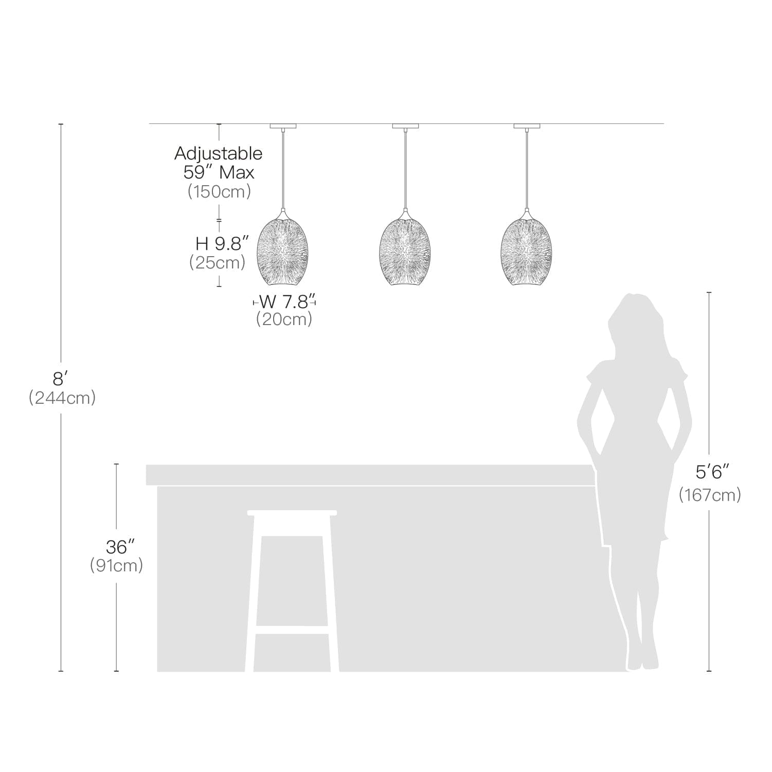 Chain LengthAdjustable, Max 59"(150cm)