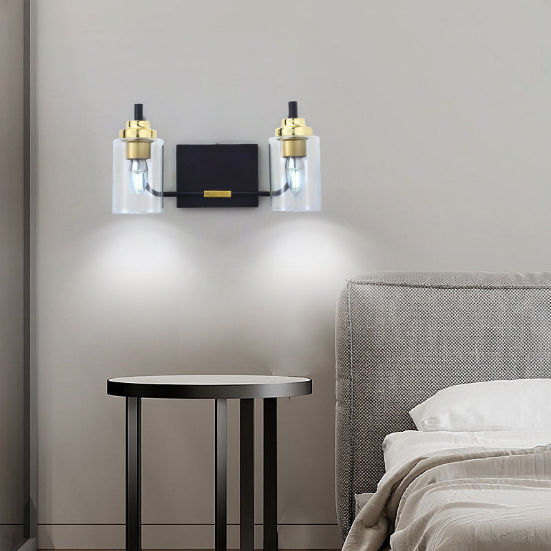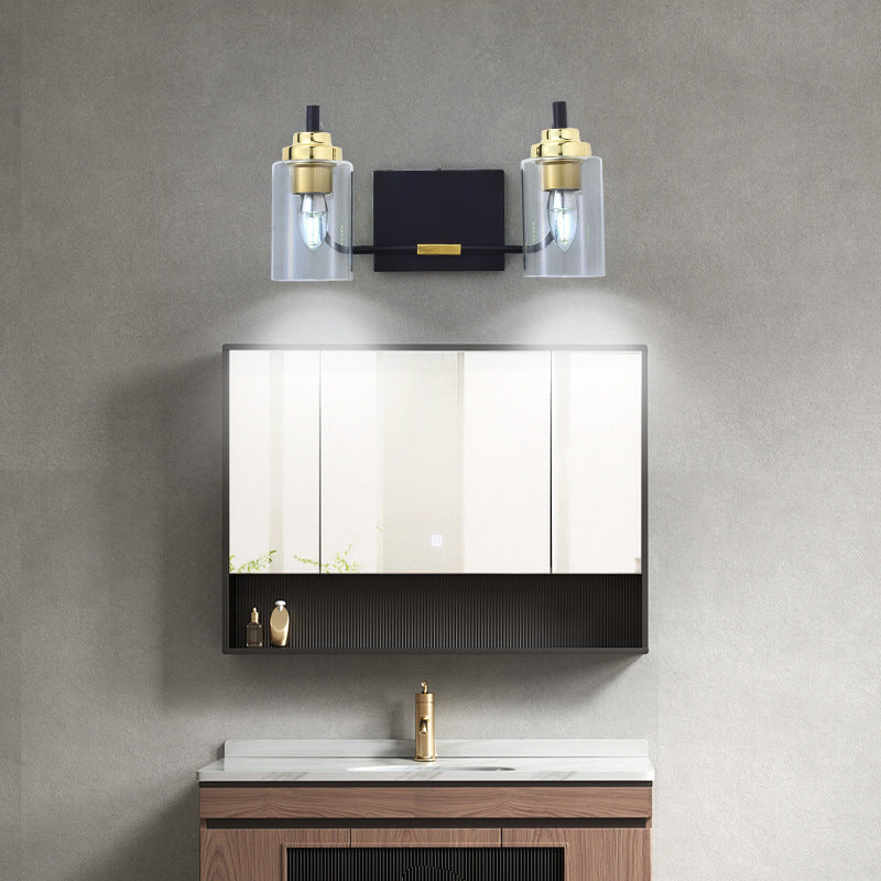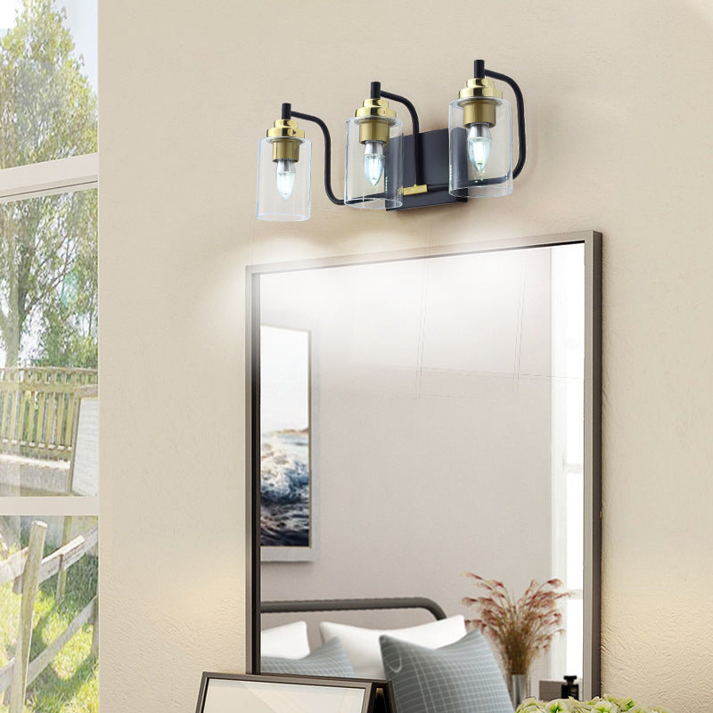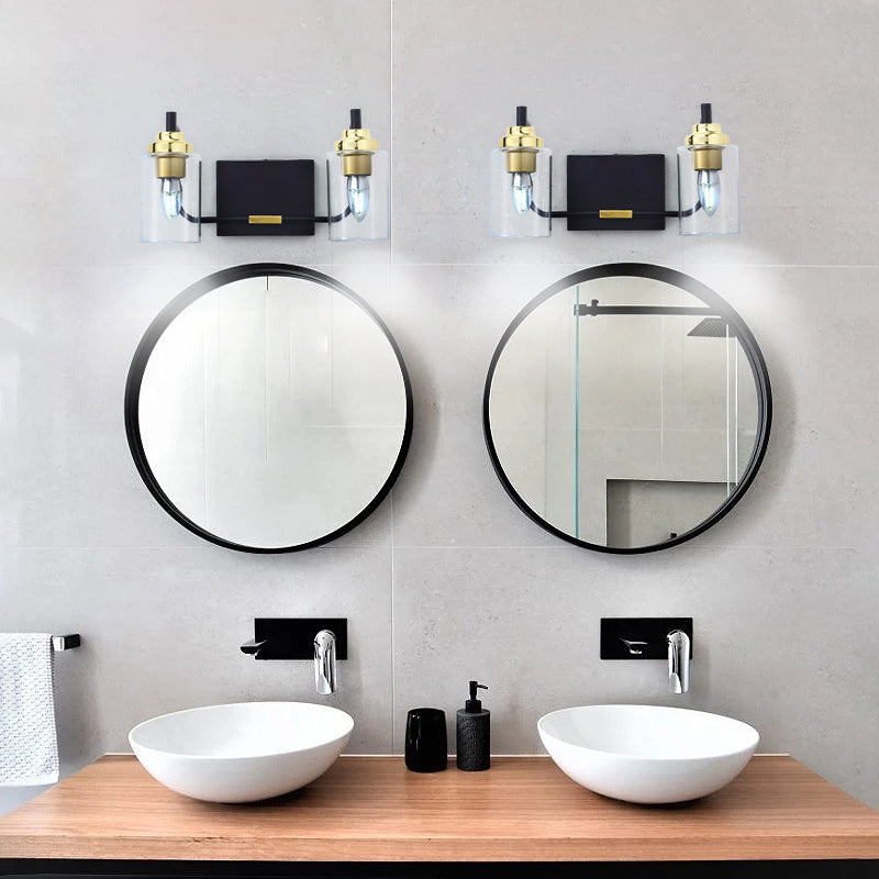 • Black finish backplate, Clear Glass Lampshade, bathroom light