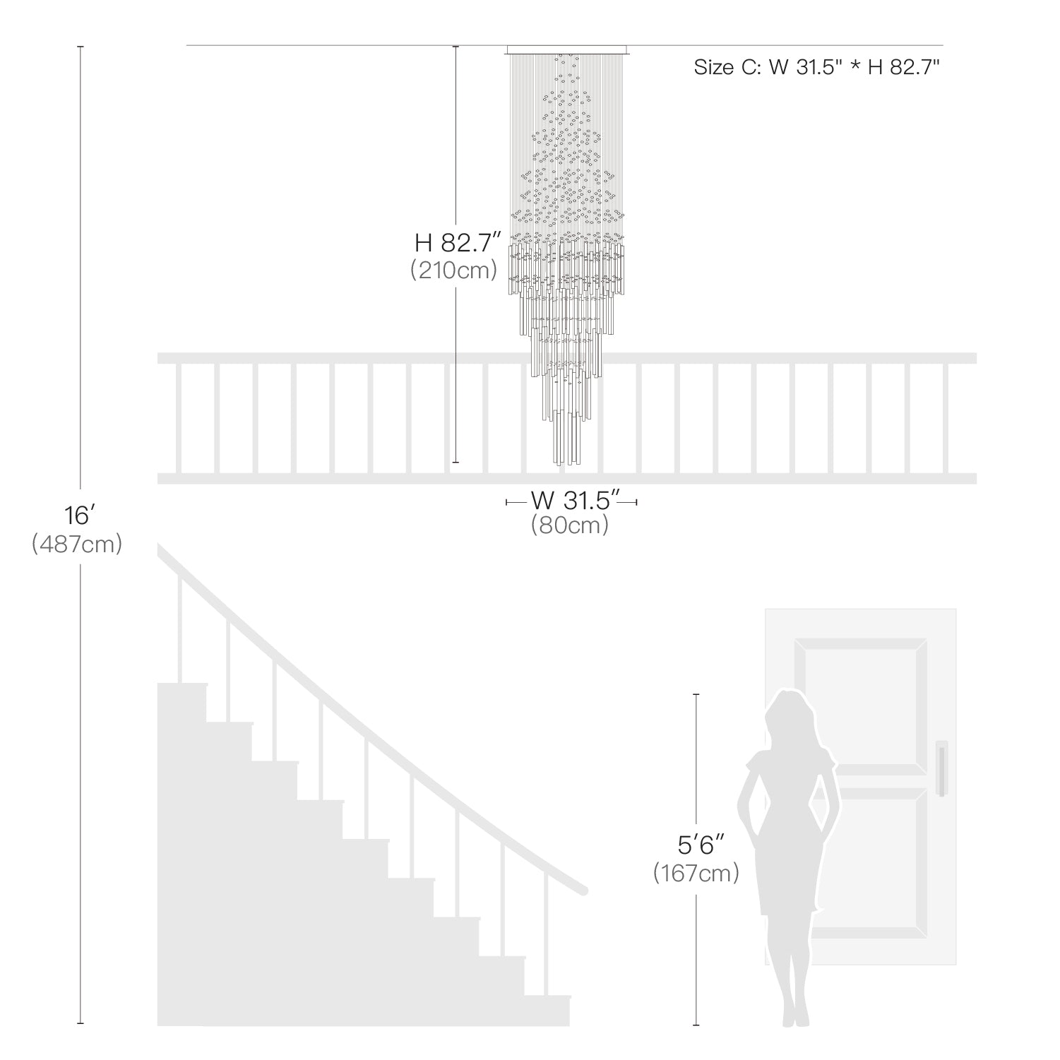 Size C: W 31.5"(80cm) x D 31.5"(80cm) x H 82.7"(210cm) (7 levels)