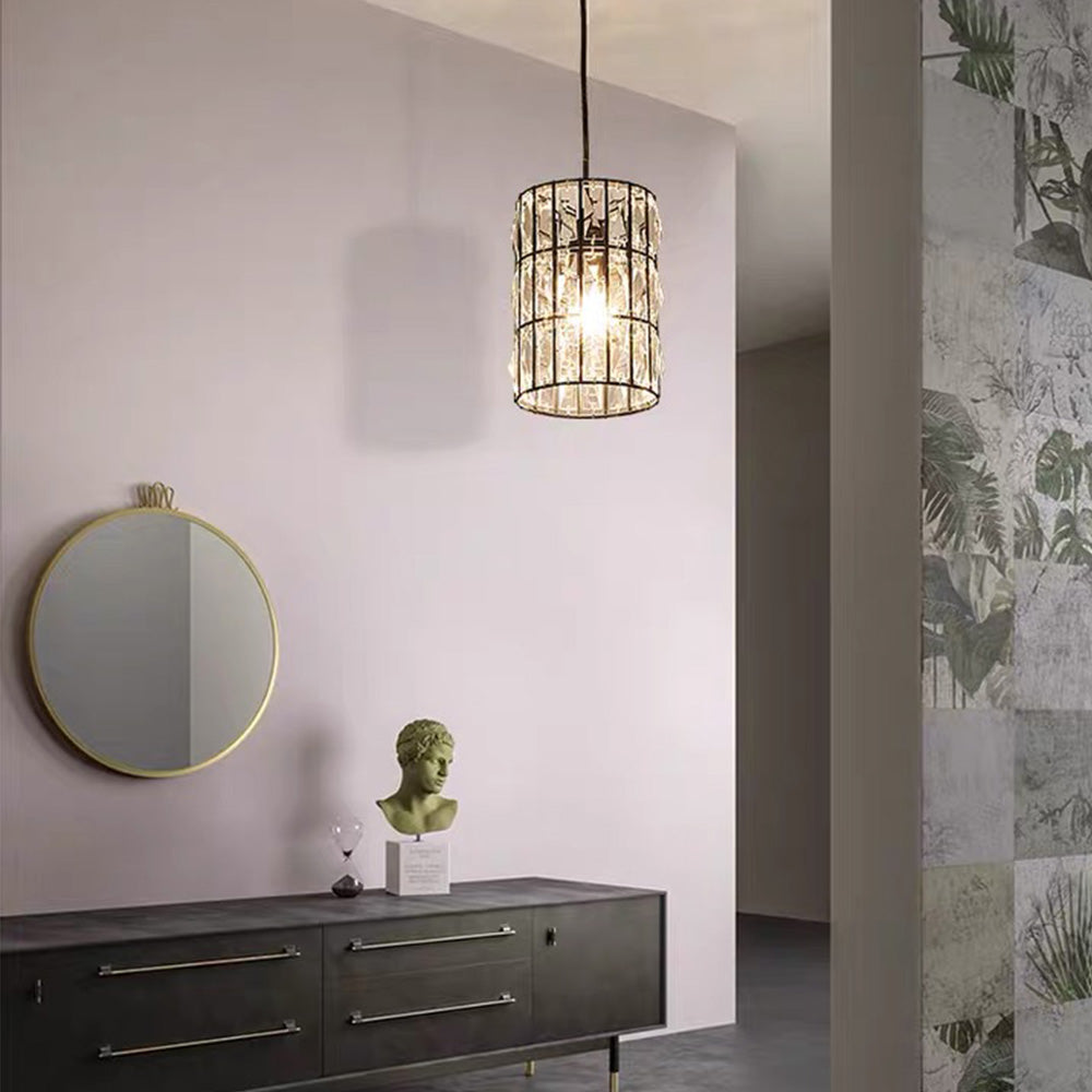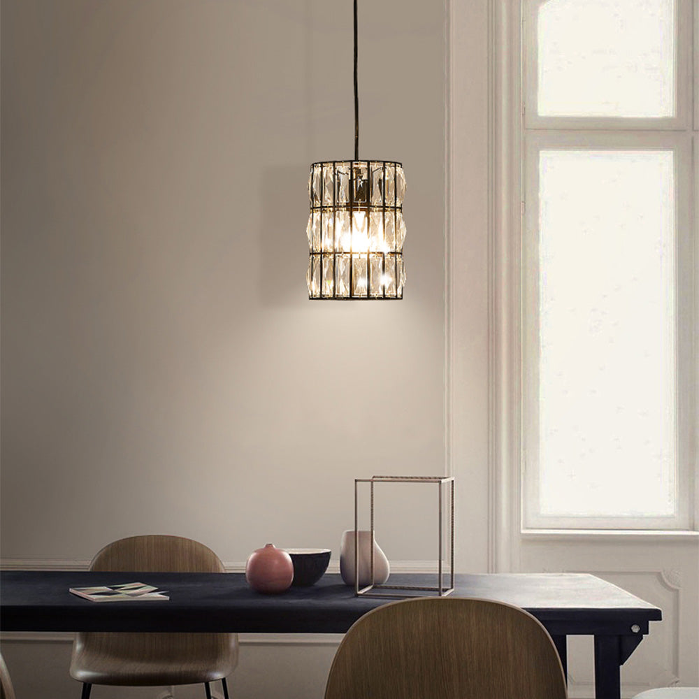 Strike the perfect balance between traditional and modern lighting elements with this Modern Creative Crystal Pendant Light. It features an eclectic blend of industrial and mid-century design, starting off with an array of clear, multi-faceted K9 crystals set within a neatly finished black metal frame. When lit, this piece playfully reflects and refracts light through the eye-catching, rectangular embellishments. A simple, no non-sense pendant light that is sure to take center stage as it hangs, preferably in multiples, over your living room, dining table, or kitchen island. Also looks excellent as a solo piece to dress up small corners.
