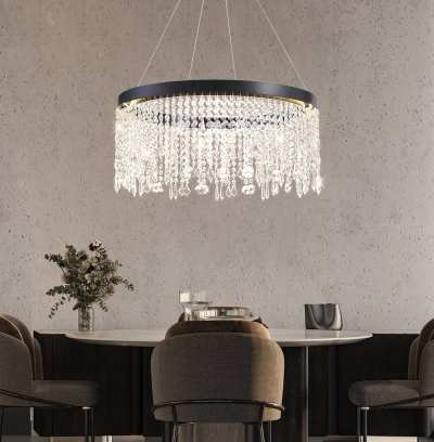 fec Black Crystal Chandelier - Round Design Pendant Light
