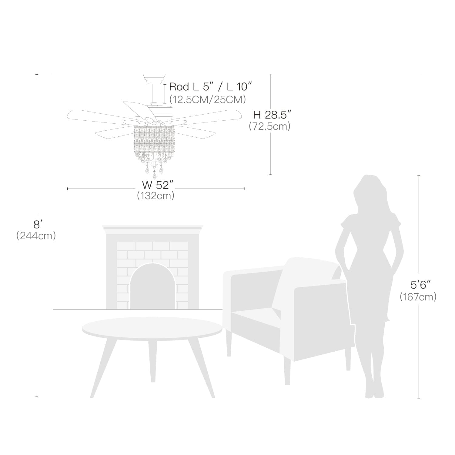 fec 5 - Blade Candle Style Crystal Ceiling Fan with Remote Control