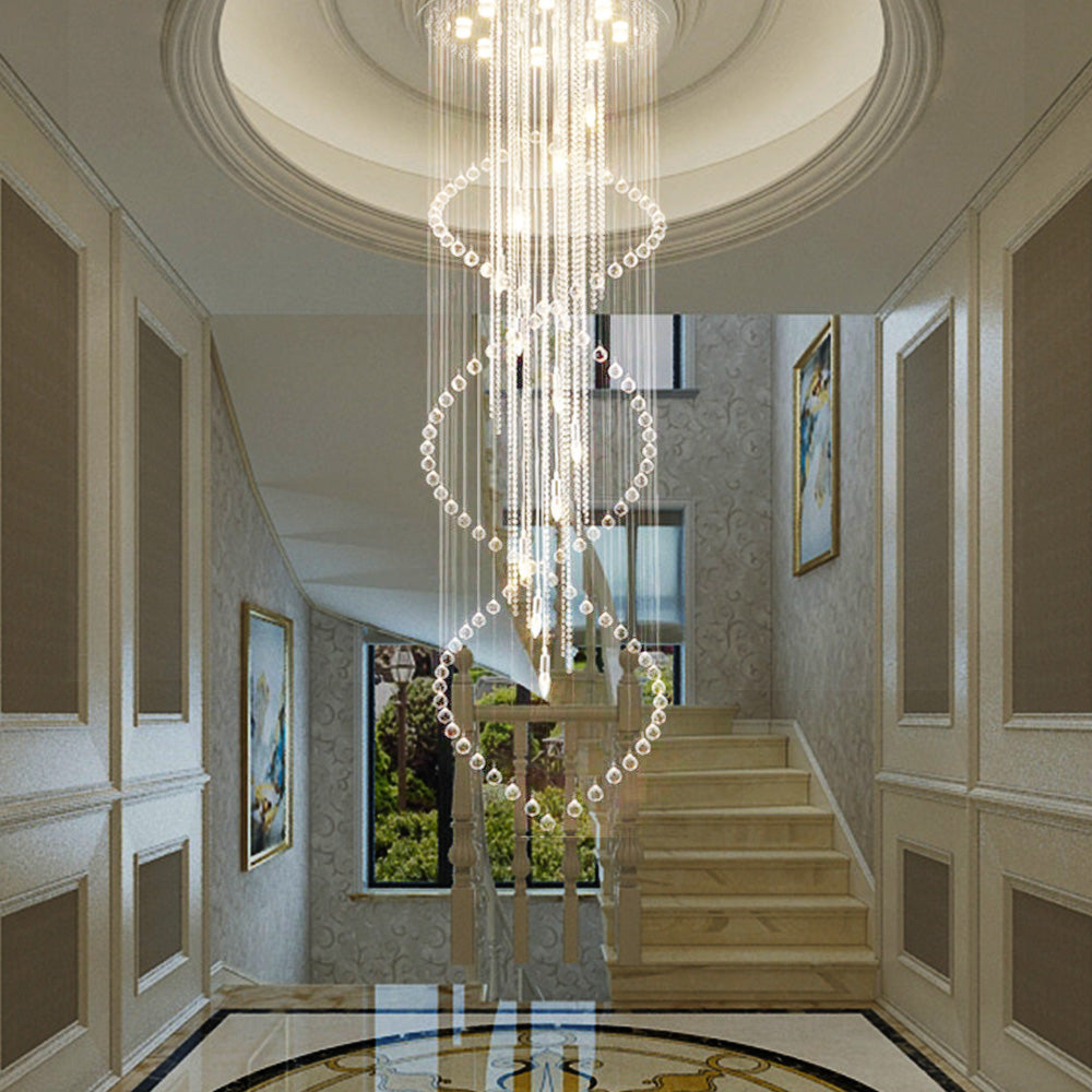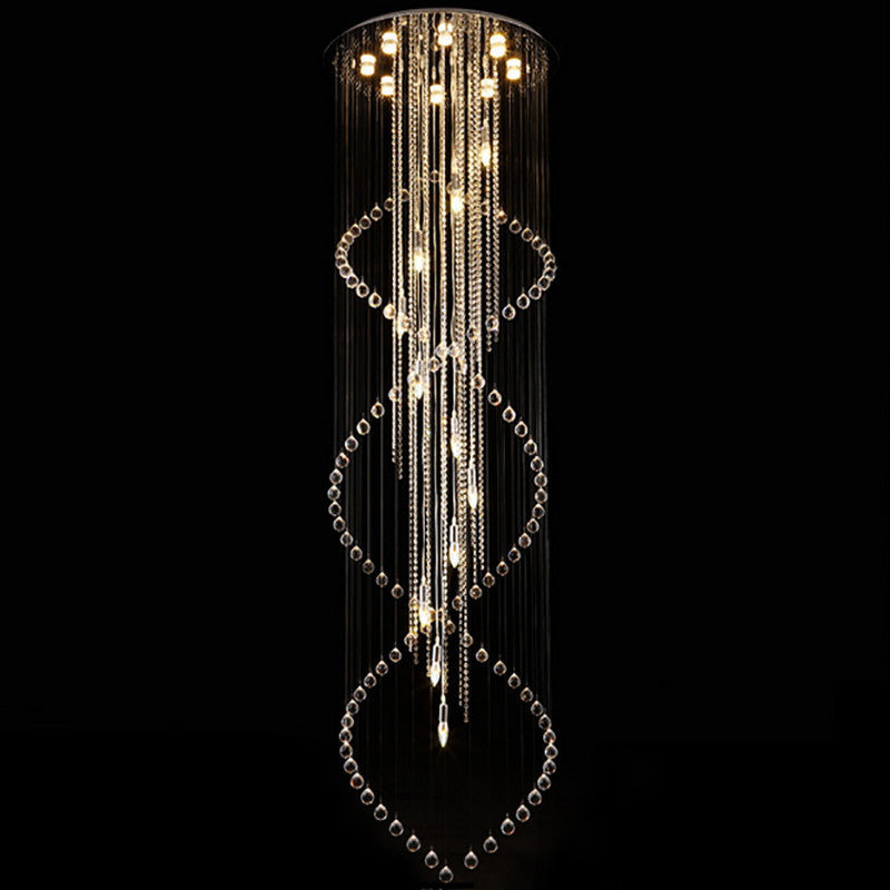 • Double Spiral Raindrop Crystal Chandelier, K9 Crystal with Chrome Base,