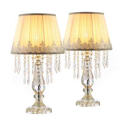 fec Elegant White Ruched Fabric Crystal Table Lamp - Set of 2