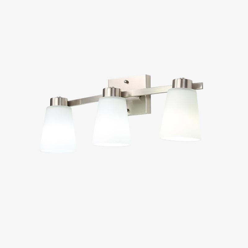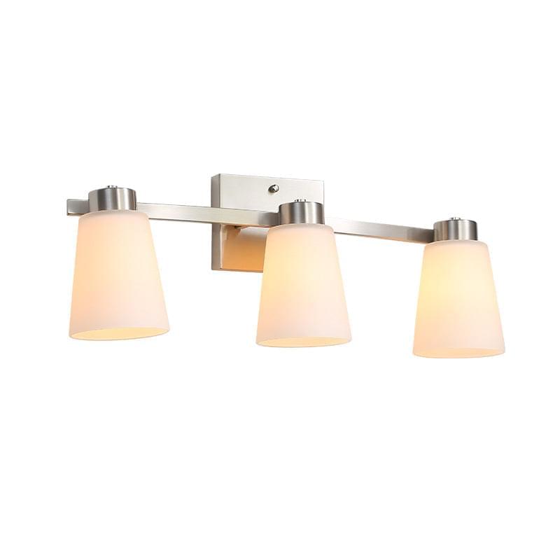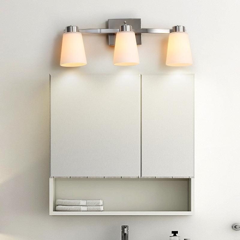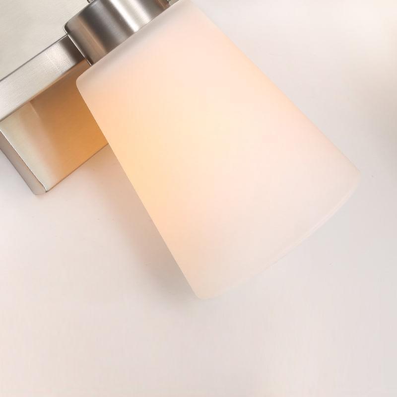 • nickel finish backplate, Frosted Glass lampshade, bathroom light