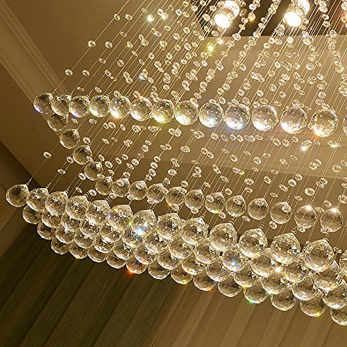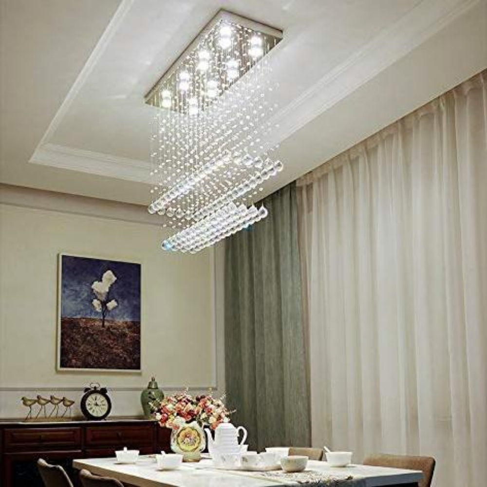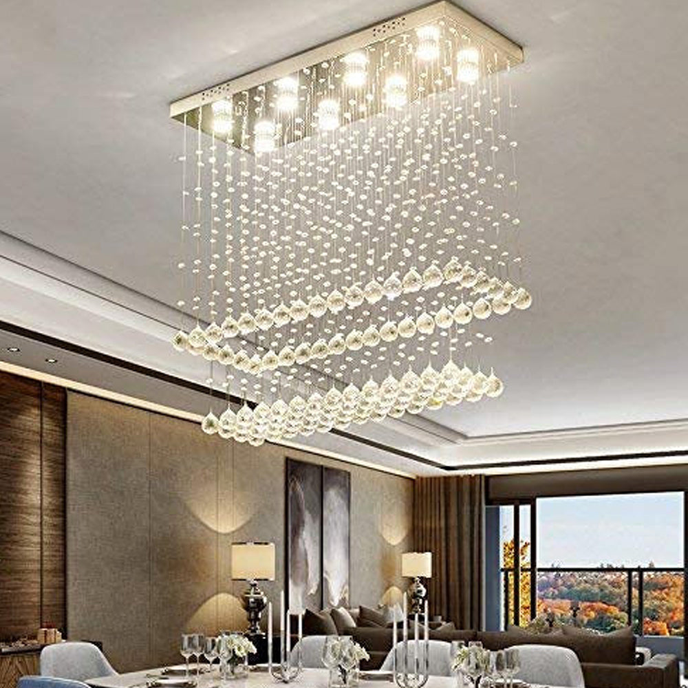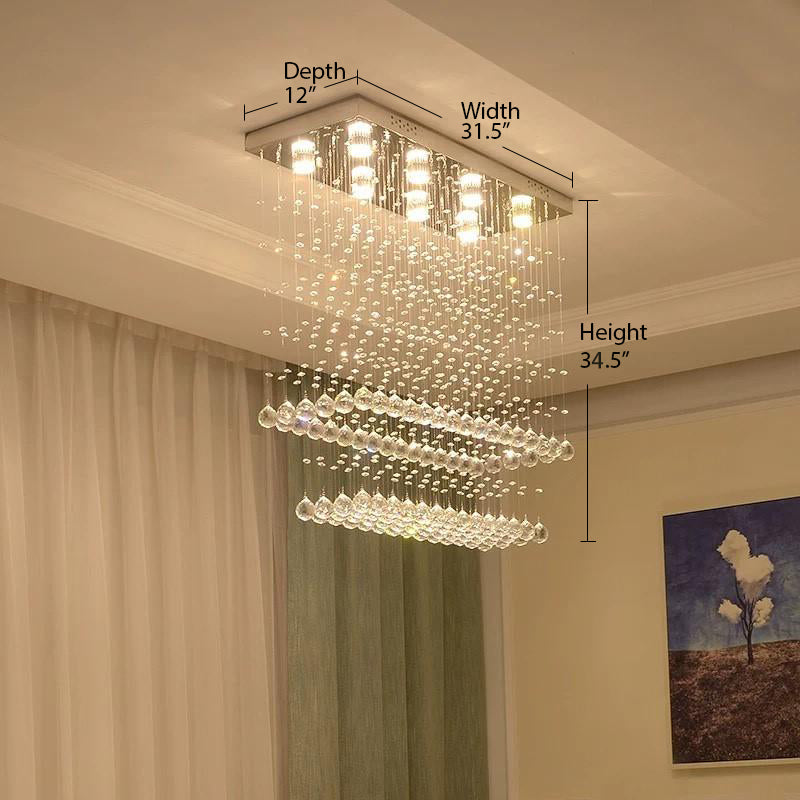 fec Contemporary Rectangular Ceiling Light - Double Layer Crystal Chandelier