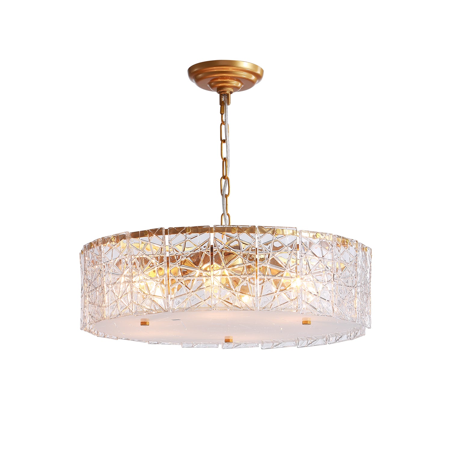 • Drum Shape Design, Cracked Glass Lampshade, Pendant Light