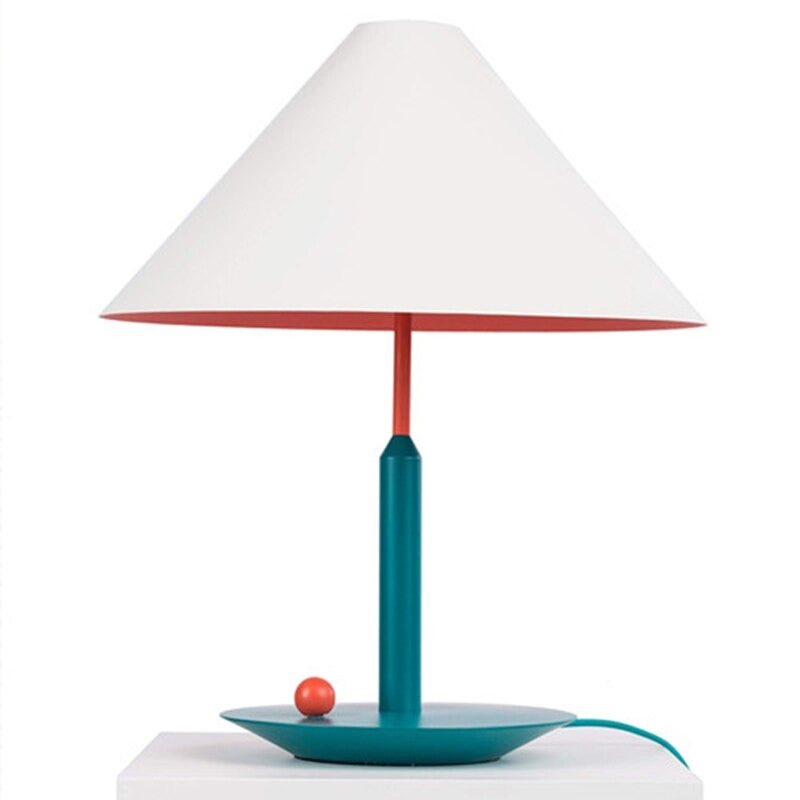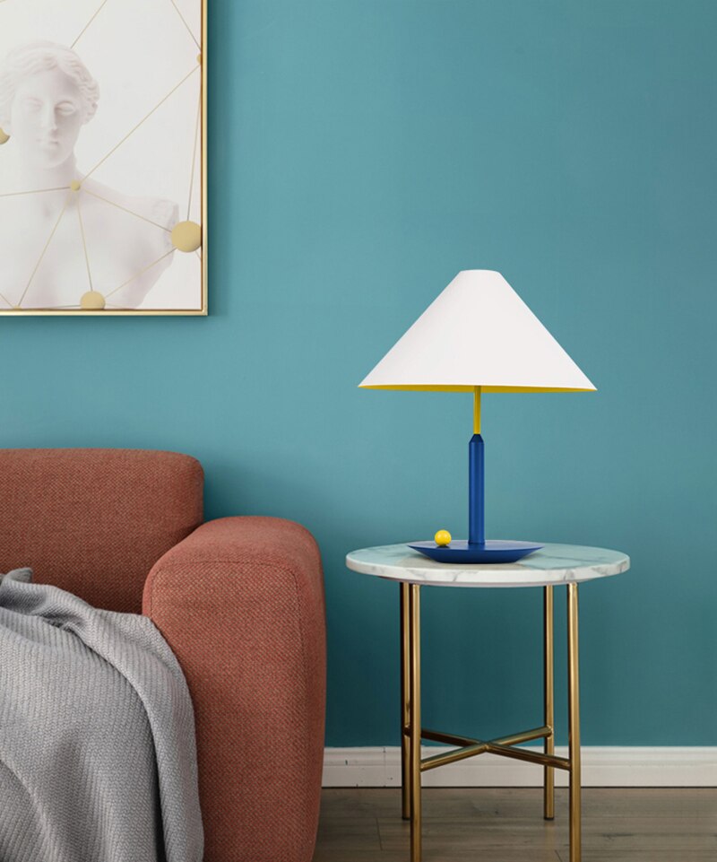 This sleek and stylish white lamp shade with contrast color table lamp is perfect for your living room or sofa side. The modern design and clean lines are accented by the bold and vibrant contrast color, making it a real centerpiece in any room. The lamp is 42cm tall and has a diameter of 55cm, while the shade is 27cm in diameter. It takes one E27 bulb (not included) and has a power cord length of 1.8m.