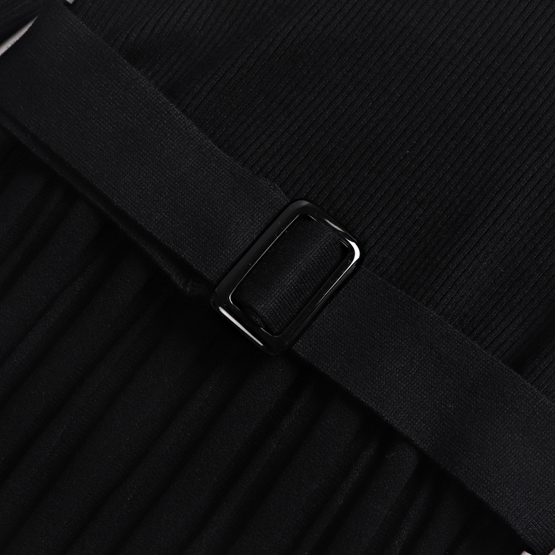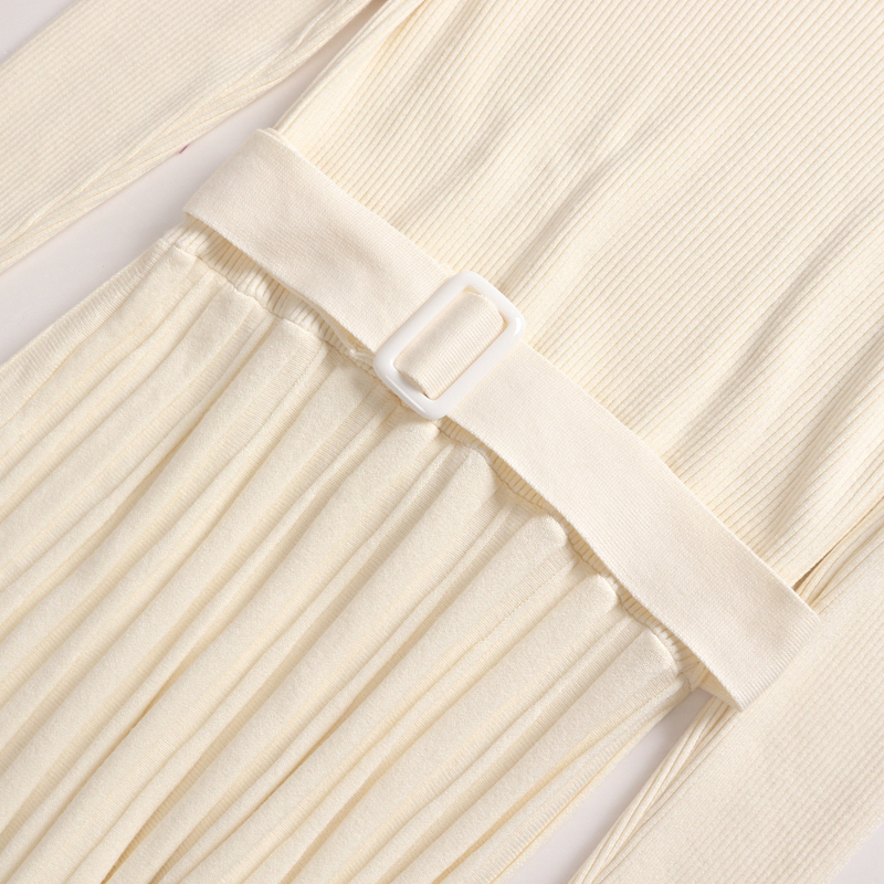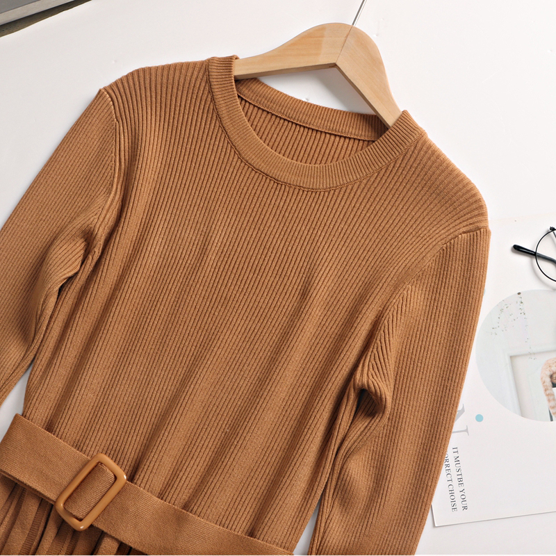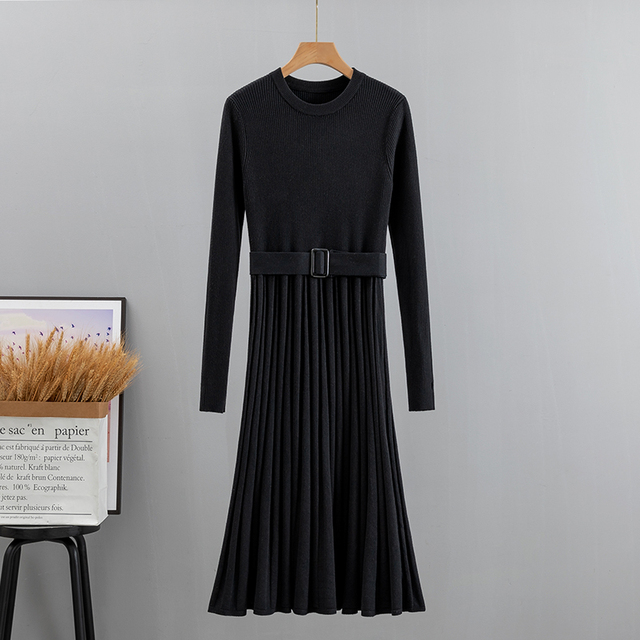 fecify GIGOGOU Chic Long Knit Women Maxi Sweater Dress O Neck Winter Thick Warm A Line Dresses with Belt Woman Pleated Midi Dress