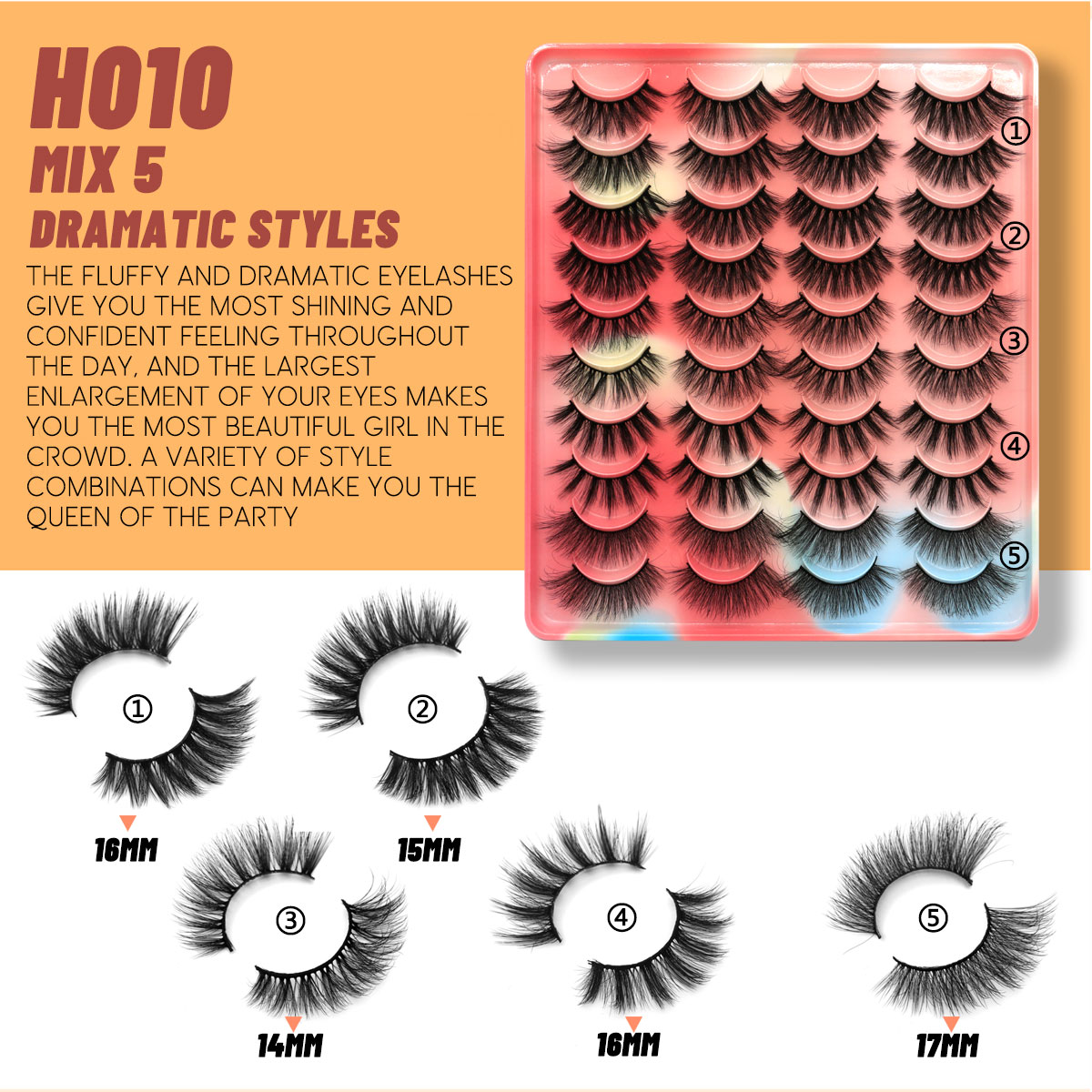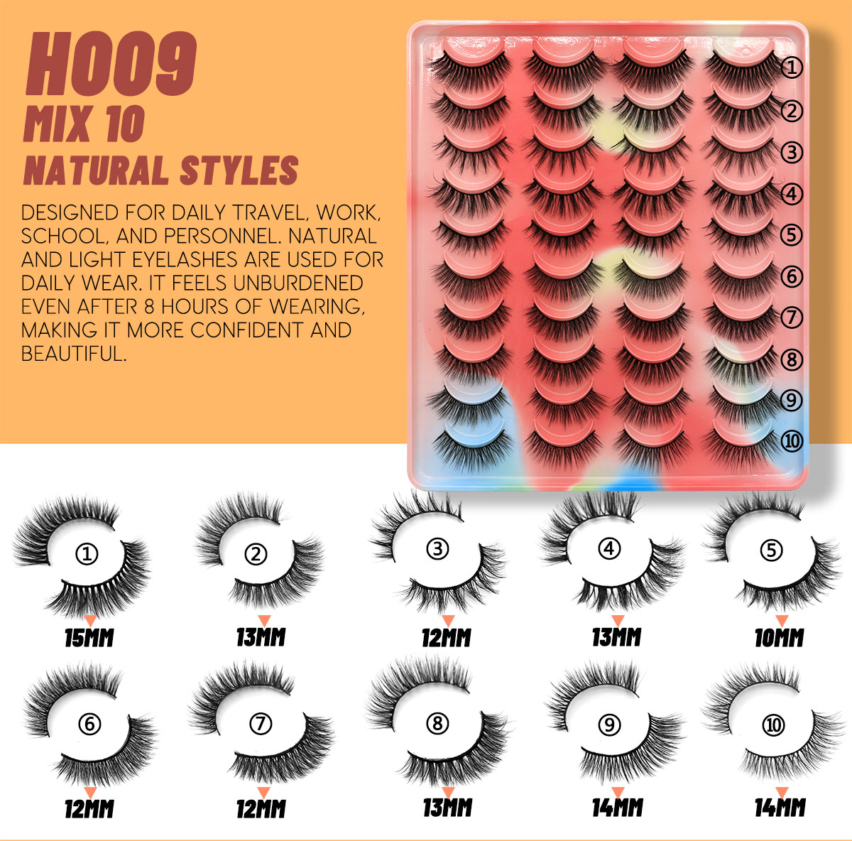 【2-10 STYLES OF FALSIES IN ONE PACK】20 Pairs lashes consist of typical round & cat-eye shape to meet your various needs. Complete your soft glam look and easy mood xD
