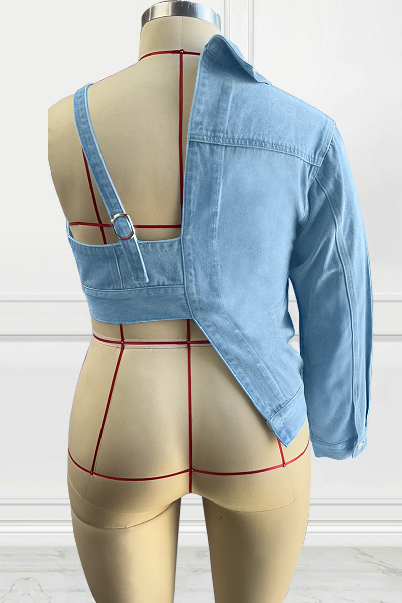 fecify Xpluswear Plus Size Blue Casual Denim Bra Jacket Outwear